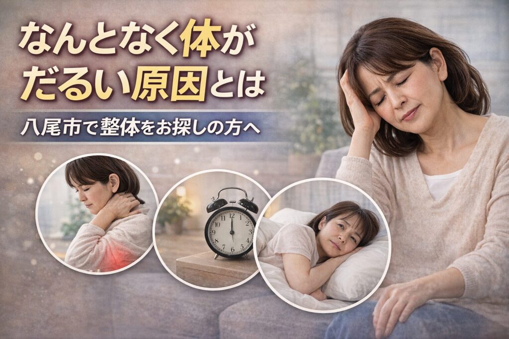 なんとなく体がだるい原因とは八尾市で整体をお探しの方へ 最近、体がだるいと感じることはありませんか。 しっかり寝たはずなのに疲れが取れない朝から体が重いやる気が出ない このような状態が続いている方は少なくありません。 特に40代から60代の方は... -