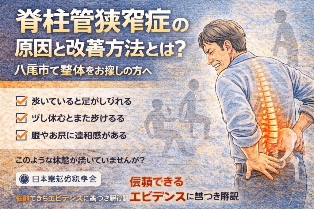 八尾市で整体をお探しの方へ 歩いていると足がしびれる少し休むとまた歩ける腰やお尻に違和感がある このような症状でお悩みではありませんか? それは「脊柱管狭窄症」が関係している可能性があります。 特に40代〜60代の方に多くみられる症状です。 脊柱... -